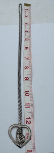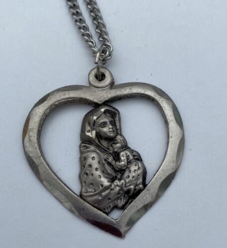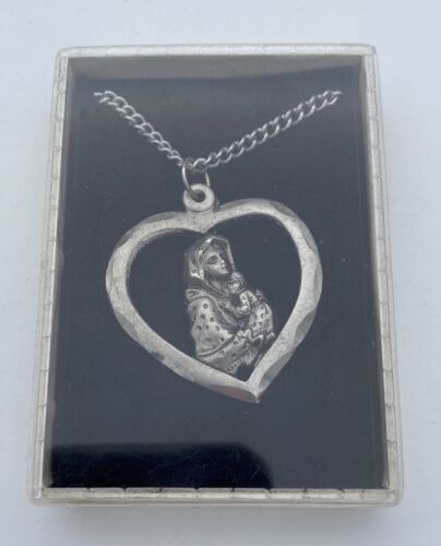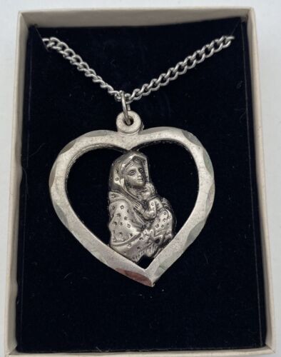 Preowned, Vintage Christian/Catholic Mother Mary/Madonna with Child Silver Pendant Necklace in original box, Religious, Stamped Italy.