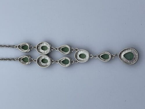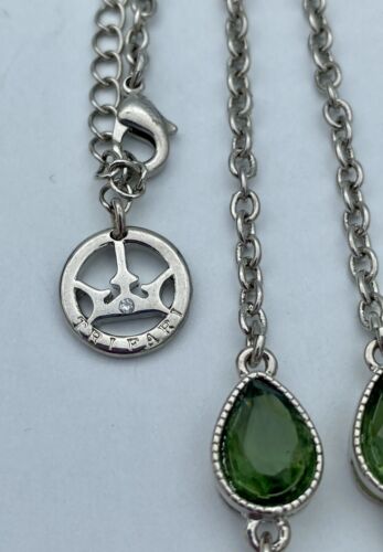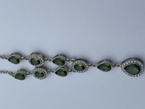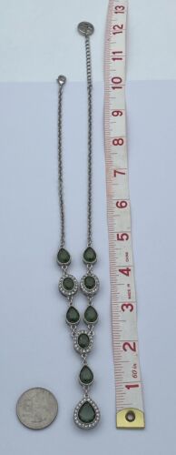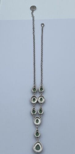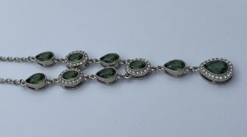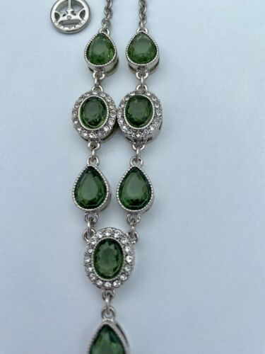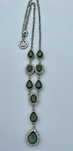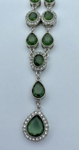 Preowned, Vintage Signed Crowned Trifari Green & White Rhinestone Y-Drop Silver Tone Necklace approximately 18.5″ (see photos)