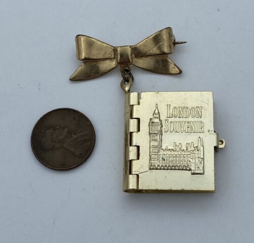 Pre-Owned, Vintage Huggy London Souvenir Miniature Post Cards/Views of London, Locket Brooch