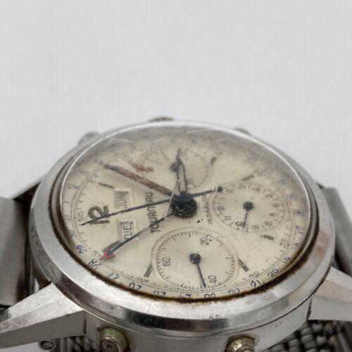 Experience the legacy of Minerva with this classic timepiece that combines historical significance with contemporary functionality. Whether you are a collector or a first-time vintage watch enthusiast, the Minerva Triple Date Chronograph promises to be a captivating addition to your collection.