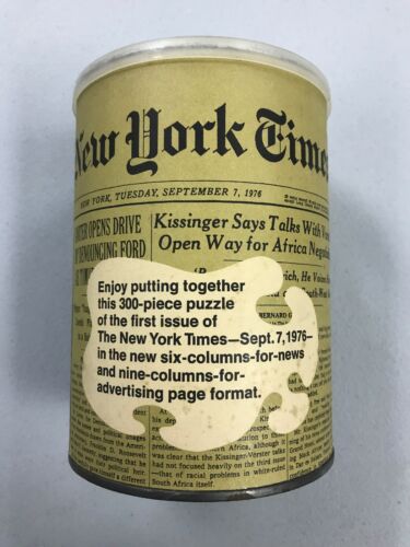 Vintage New York Times Puzzle In A Can 1976. Condition is Used. Shipped with USPS First Class Package. This vintage rare puzzle has not been opened. Please see the photos. Be the first to open this time capsule from 1976.