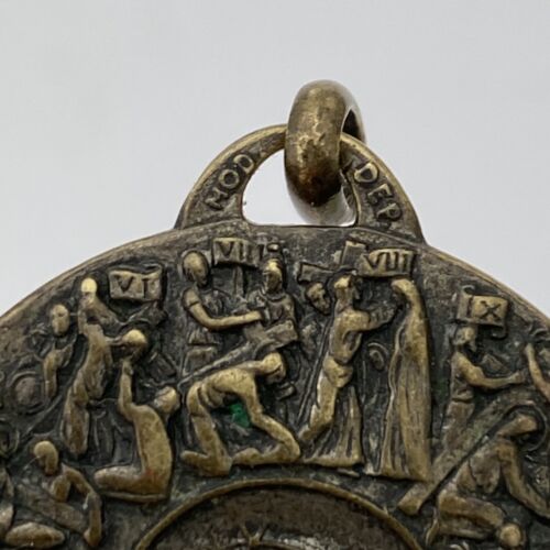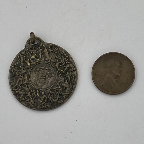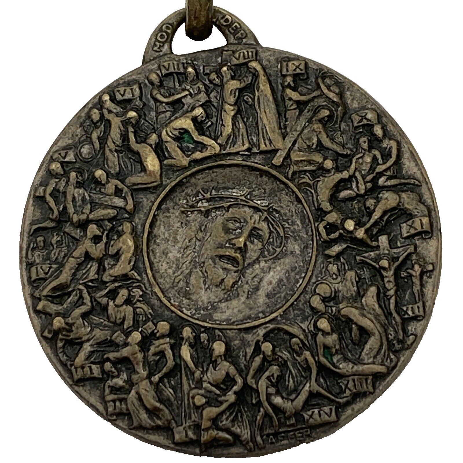 This product is a vintage medal/pendant made in Italy with an exquisite design depicting the Stations of the Cross.
